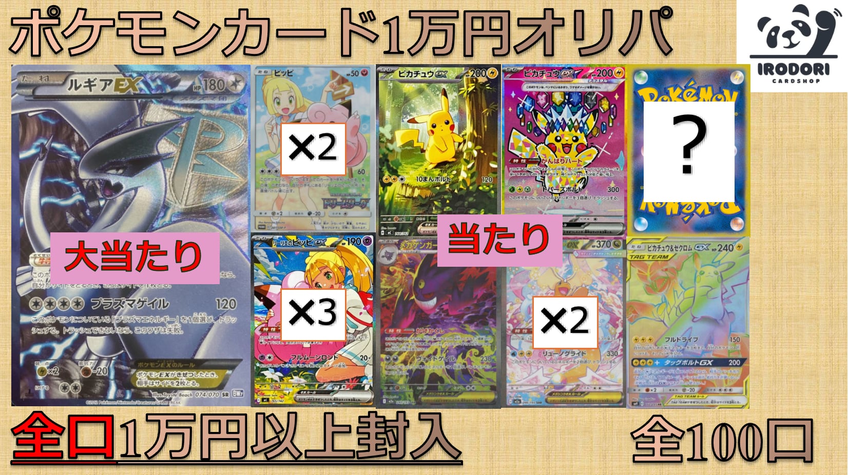 当店で人気の購入金額以上が確定の得オリパ。年末ということで今年お世話になったお客様に感謝を込めて還元率とか考えない最強仕様に仕上げました。この当たり一覧で実質ハズレなし仕様です。もう言うまでもないですよね、